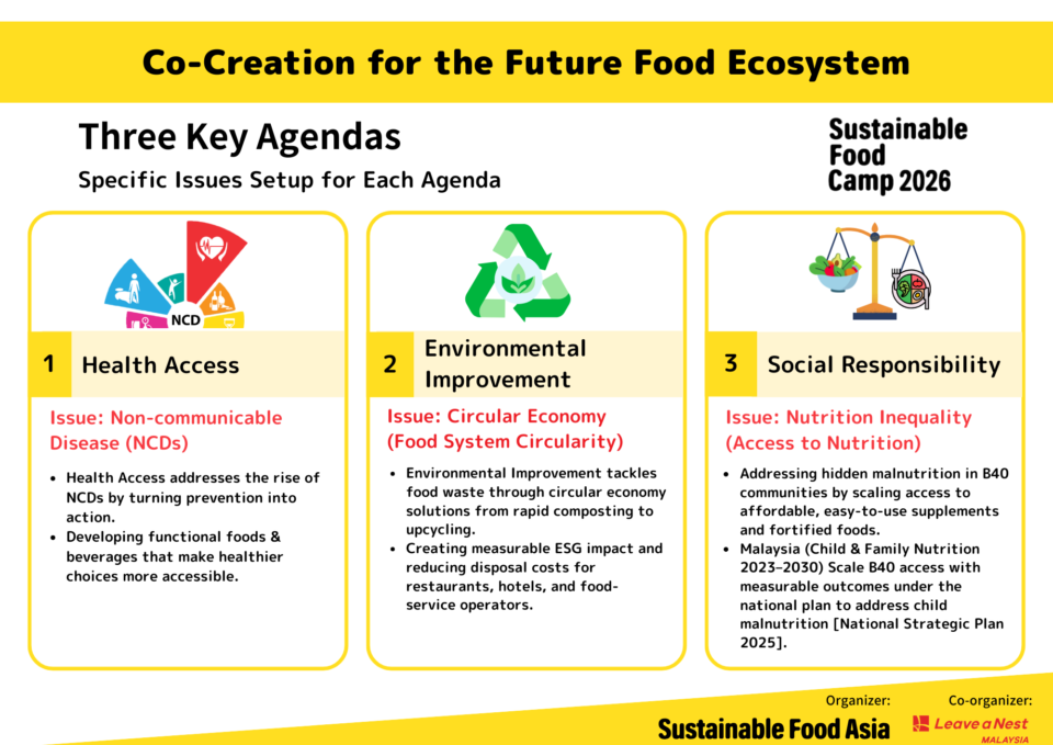 Sustainable Food Asia (SFA), in collaboration with Leave a Nest Malaysia, will host Sustainable Food Camp 2026 (SFC 2026).